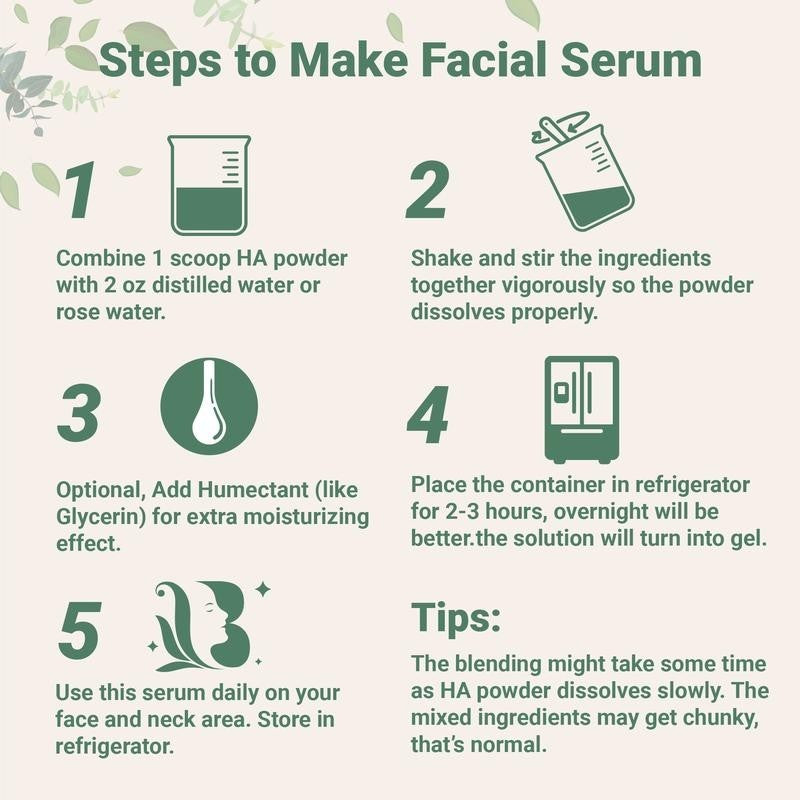 Revitalizing Face Mask Booster: Elevate your favorite face mask by adding a pinch of HA powder. Enjoy enhanced hydration and a radiant glow.